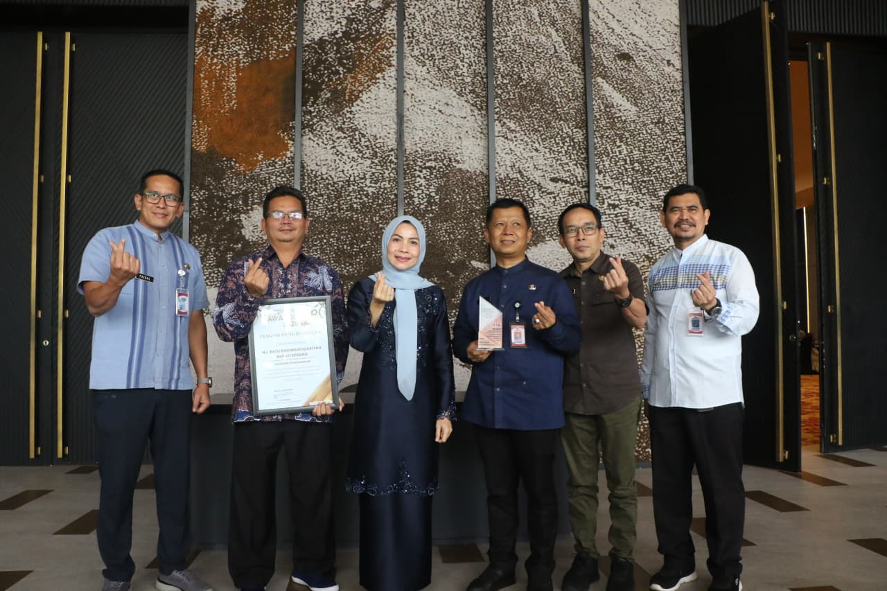 SERANG – Bupati Serang Ratu Rachmatuzakiyah memperoleh Award 2026 kategori kepala daerah inovatif program Kemudahan Perizinan Berusaha bagi Investor di Kabupaten Serang dari Pokja Wartawan Ekbispar Banten di Aston Hotel Curug Kota Serang pada Jumat, 6 Maret 2026.