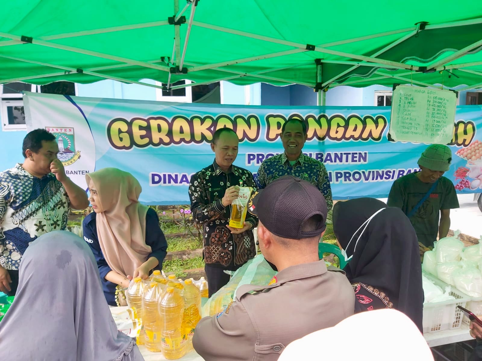 Dinas Ketahanan Pangan dan Pertanian atau DKPP Kabupaten Serang menggelar Gerakan Pangan Murah atau GPM di Halaman Kantor Kecamatan Pabuaran pada Kamis, 26 Februari 2026.